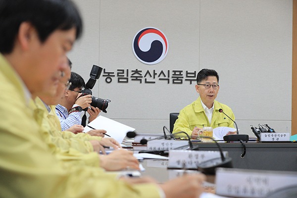 김 장관은 “지자체에서는 태풍이 지난 뒤 즉시 소독을 할 수 있도록 생석회와 소독약 등 방역물품을 미리 준비하고 접경지역 하천유역과 도로 등에 대한 방역을 즉시 시행할 수 있도록 지자체와 관계부처는 협조해달라”고 요청했다.