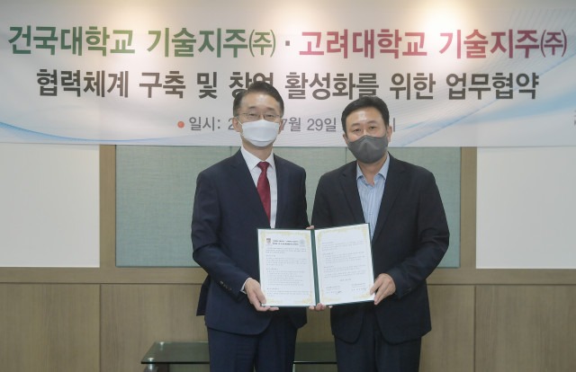 건국대학교 기술지주는 최근 고려대학교 기술지주와 ‘협력체계 구축 및 창업 활성화를 위한 업무협약’(MOU)을 체결했다고 2일 밝혔다.