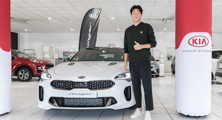 기아자동차는 지난 24일(현지 시각) 프랑스 보르도에 있는 기아자동차 딜러샵에서 황의조 선수에게 기아자동차 프리미엄 스포츠 세단 ‘스팅어’를 전달했다.