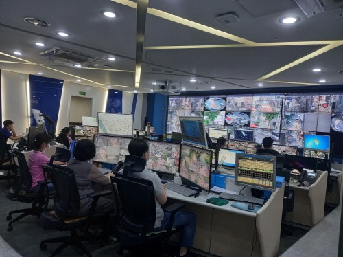 U-통합운영센터에서는 금천구에 설치된 CCTV를 관제요원, 경찰관 등 18명이 24시간 상시 모니터링을 하고 있다.