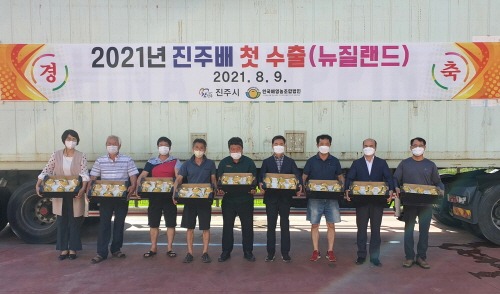 경남 진주시 대표 농산물 중 하나인 '햇배'가 올해 국내에서 처음으로 뉴질랜드 수출길에 올랐다고 9일 밝혔다.
