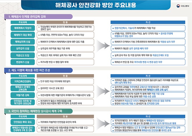 이에 따라 정부는 해체공사 관계자로 구성된 전문가 TF를 운영, 지속적인 논의를 통해 안전강화 대책을 마련했다.