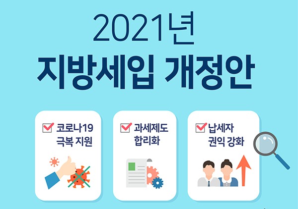 특히 이번 예고안에는 지난 7월 26일 기획재정부가 발표한 2021년 국세 개정안 내용이 일부 반영돼 있는데, ▲코로나19 극복 및 지역경제 활성화 지원 ▲지방세정 운영 효율화 및 납세자 권익 강화 ▲지방세입 과세제도 합리화 등을 추진한다.