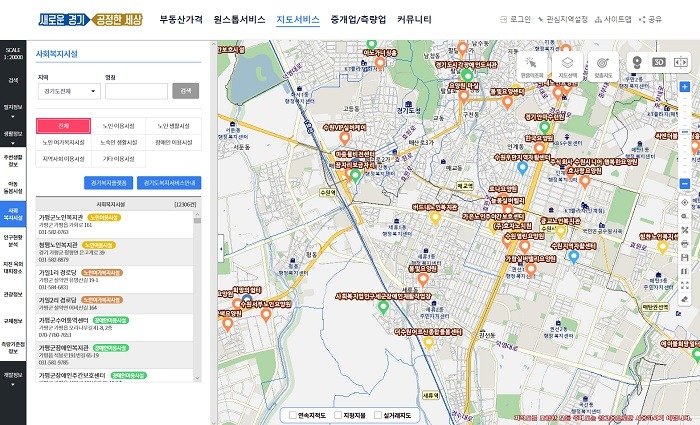 경기도 부동산정보사이트 ‘경기부동산포털’(gris.gg.go.kr)이 12일부터 최신 항공사진으로 교체하고, ‘브이월드 3D지도’와 ‘사회복지시설지도’ 등 신규 서비스를 제공한다.