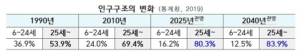 특히 25세 이상 국민이 총 인구의 80%를 넘어설 것으로 예상되면서 학교교육 이후에도 국민 한 사람 한 사람에 대한 투자 확대가 중요할 것으로 보인다.