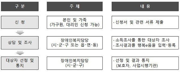 또한 신규로 서비스를 원하는 경우 주민등록상 주소지 관할 읍·면·동 또는 시·군·구에 방문해 신청할 수 있으며, 본인 또는 부모·가구원·대리인도 신청 가능하다.