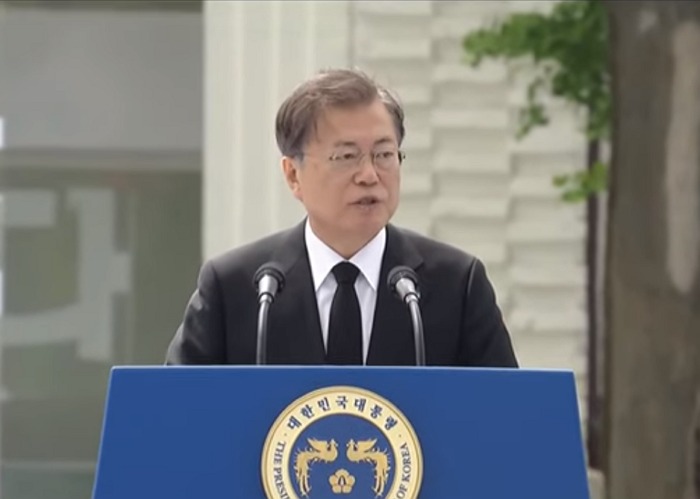 문 대통령은 “봉오동 전투와 청산리 대첩을 이끌었던 독립전쟁의 영웅, 대한독립군 총사령관 홍범도 장군이 오늘 마침내 고국산천에 몸을 누이신다”며 “봉오동 전투와 청산리 전투 101주년, 장군이 이역만리에서 세상을 떠나신 지 78년, 참으로 긴 세월이 걸렸다”고 언급했다.