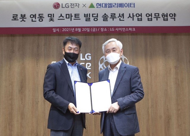 현대엘리베이터와 LG전자는 LG사이언스파크(서울시 강서구)에서 ‘로봇 연동 및 스마트빌딩 솔루션 사업을 위한 양해각서(MOU)’를 체결한다고 20일 밝혔다.