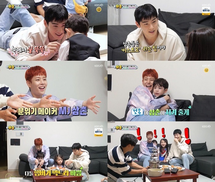 차은우와 MJ는 지난 22일 오후 9시 15분 방송된 KBS2 ‘슈퍼맨이 돌아왔다’(이하 ‘슈돌’)에 출연했다.