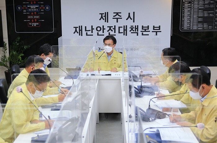 제주시에서는 제12호 태풍 ‘오마이스’ 북상에 따라 8월 23일 오전 10시, 이상헌 부시장 주재로 긴급상황판단회의를 개최하여 부서별 태풍 대비 조치사항을 점검하고 향후 대응계획을 논의했다.