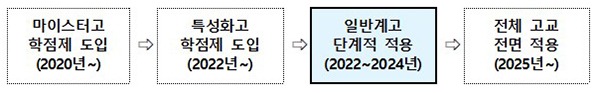 정부가 2022년부터 2024년까지 전체 일반계열 고등학교에 고교학점제를 단계적으로 적용할 방침이다.