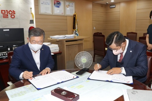 경남 밀양시와 사회복지법인 더 굿 세이브는 24일 고독사를 예방할 수 있는 반려어 친구 만들어주기 사업 업무협약(MOU)을 체결했다.