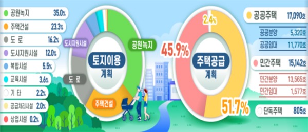 전체 주택 중 35%인 1만 8810가구는 서민 주거안정을 위한 공공임대주택으로 공급될 계획이며 공공분양주택은 9497가구가 공급된다.