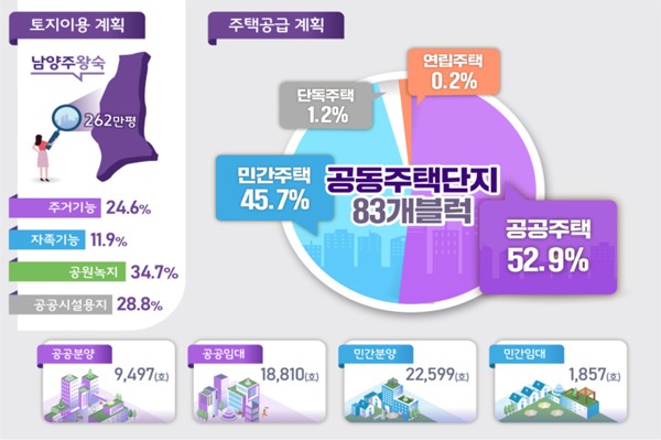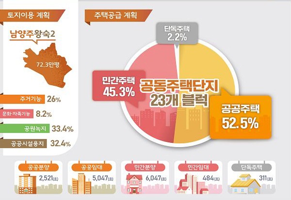 남양주 왕숙과 하남 교산 신도시를 통해서는 총 10만 1000가구(인구 약 23만 7000명)의 주택이 공급된다. 서민 주거안정을 위한 공공임대주택 3만 5627가구와 무주택자를 위한 공공분양주택 1만 7338가구가 공급된다.