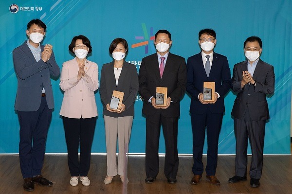임혜숙 과학기술정보통신부 장관은 정부를 대표해 이날 정부서울청사 광화문홀에서 ‘이달의 한국판뉴딜’로 선정된 세 기관에 기념패를 전달했다.