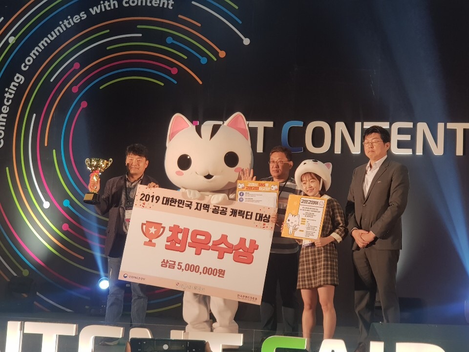 고양시 대표 마스코트 고양고양이가 문화체육관광부 주최 한국콘텐츠진흥원 주관 '제2회 우리동네 캐릭터 축제 및 2019 넥스트 콘텐츠 페어’ 시상식에서 최우수상과 상금 500만 원을 받았다.