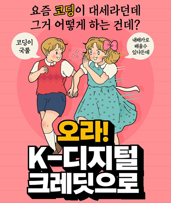 한편 ‘K-디지털 크레딧’은 청년 등이 디지털 기초역량 부족으로 노동시장 진입과 적응에 어려움을 겪지 않도록 2021년부터 새롭게 시작한 사업으로, 민간의 인기 있는 훈련기관에서 수강가능한 훈련비를 1인당 50만 원 지원하고 있다.