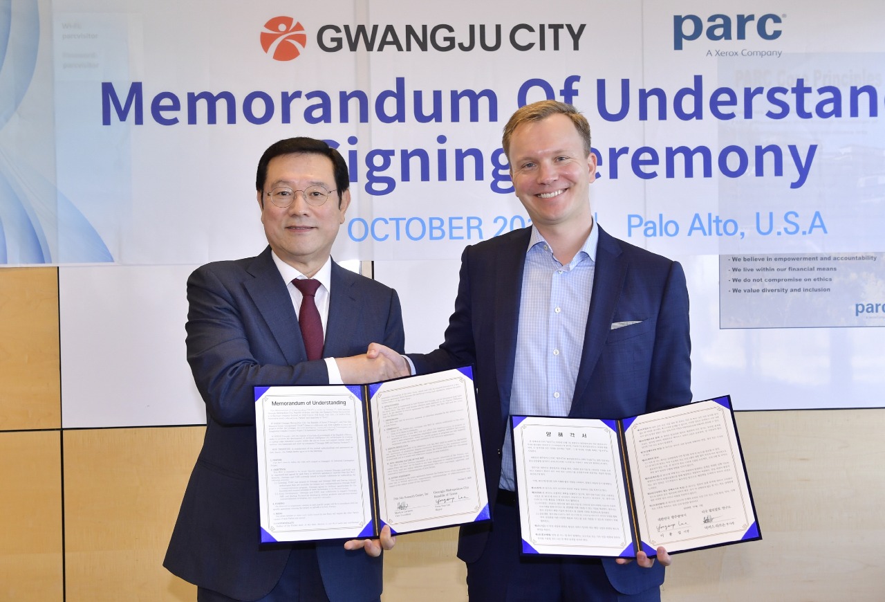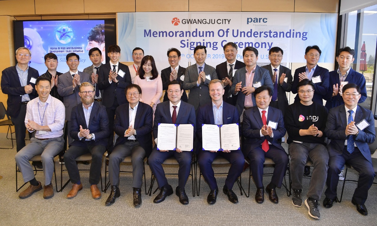 이용섭 광주광역시장은 현지시간으로 7일 오전 팔로알토연구소(PARC, Palo Alto Research Center)와 인공지능(AI)기술협력 협약(MOU)을 체결한 데 이어 이날 오후에는 빌더스 벤처캐피탈(Builders VC)과 기업 투자 협력에 관한 협약(MOU)을 체결했다.