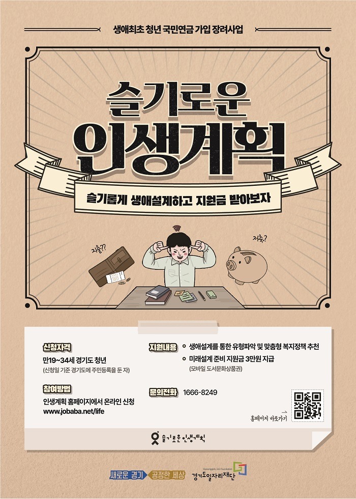 대상자는 사업 담당 홈페이지인 ‘슬기로운 인생계획’(www.jobaba.net/life)에서 국민연금 조기 가입 관련 생애 설계 및 교육콘텐츠를 수료하면 일자리통합접수시스템(www.apply.jobaba.net)에서 교육 지원금으로 모바일 도서문화상품권(3만 원)을 증정한다.