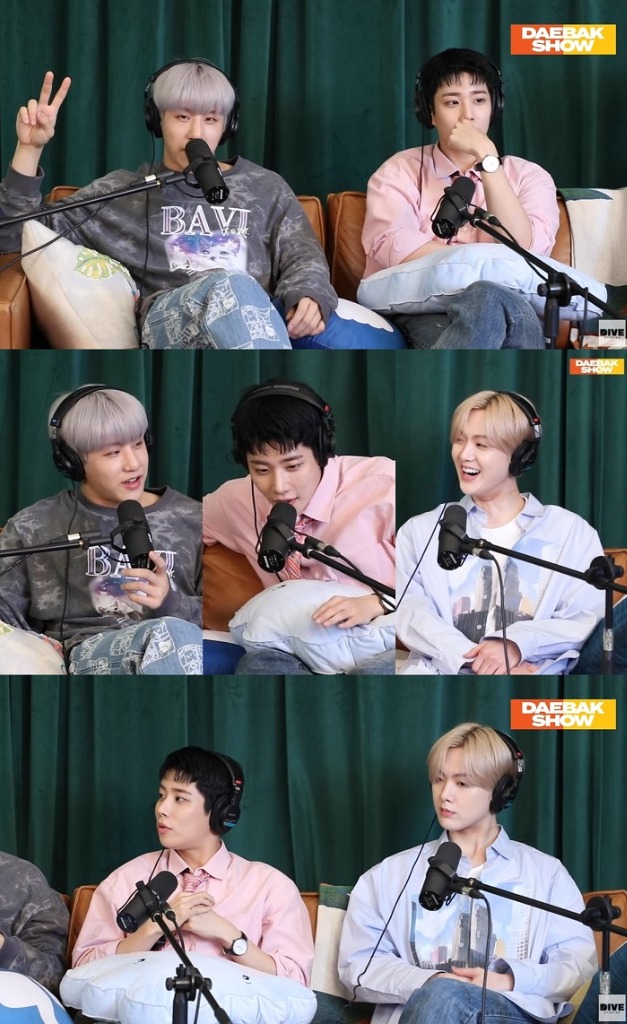 MJ, 진진, 윤산하는 31일 자정 방송된 DIVE Studios Podcasts ‘Daebak Show’(대박쇼)에 출연, 남다른 텐션으로 분위기를 압도했다.