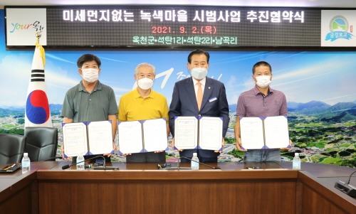 2일 옥천군과 동이면 석탄1리, 석탄2리, 남곡리 3개 마을은 '미세먼지 없는 녹색마을 시범사업'협약서에 서로 서명하고 쓰레기 불법소각 및 무단투기 근절에 대한 의지를 다졌다.