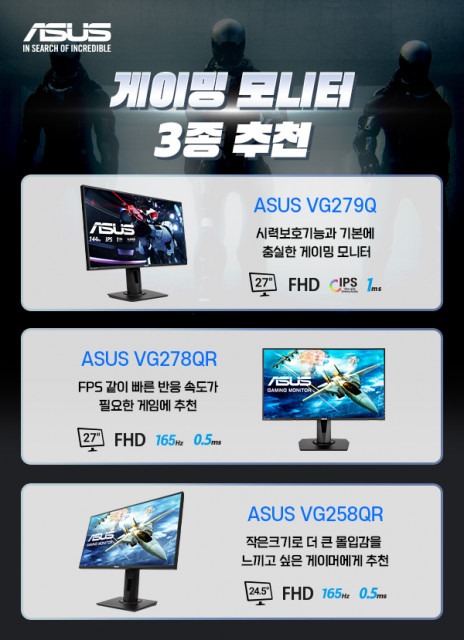 글로벌 컴퓨팅 전문 기업 ASUS의 한국 지사인 에이수스 코리아(지사장: 강인석, 이하 ‘에이수스’)는 에이수스만의 다양한 게이밍 기술을 갖춘 게이밍 모니터 3종이 게이머들의 눈길을 끌고 있다고 밝혔다.