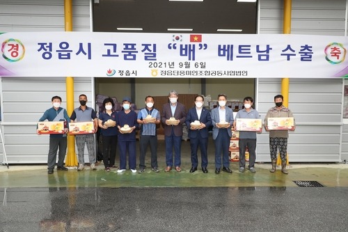 전북 정읍시의 특산품인 고품질 '정읍 배'가 베트남 수출길에 올랐다.