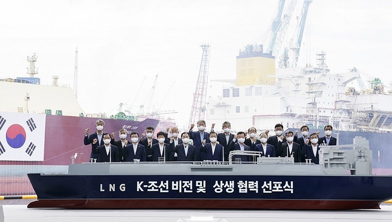 그러면서 “탄소중립과 4차 산업혁명에서 비롯된 친환경화, 스마트화의 물결은 조선·해운산업에서도 거스를 수 없는 흐름이다. 우리가 강점을 가진 분야”라며 “하늘이 우리에게 준 기회라고 생각한다. 정부는 기업과 함께 새로운 패러다임에 적극 대응하겠다”고 말했다.
