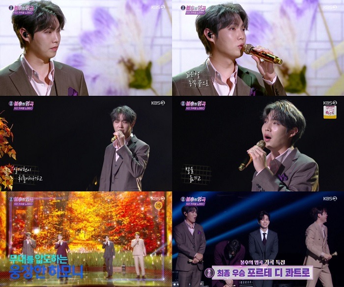 지난 11일 방송된 KBS 2TV ‘불후의 명곡-전설을 노래하다’ ‘우리 가곡을 노래하다’ 편에 출연한 손태진이 ‘포르테 디 콰트로’로 최종 우승을 거머쥐었다.