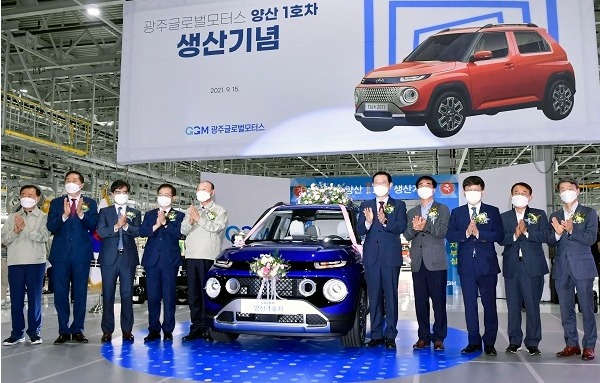 산업통상자원부는 이날 광주 빛그린 산업단지에 위치한 광주글로벌모터스 공장에서 ‘광주글로벌모터스 양산 1호차 생산 기념행사’가 열렸다고 밝혔다.