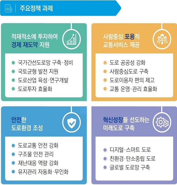 또 도로시설물에 대한 디지털 투자를 통해 유지관리를 고도화하고 스마트 기술을 적용해 안전 사각지대를 해소할 계획이다. 시나리오 기반의 대응체계를 구축해 재난대응 역량도 강화하기로 했다.