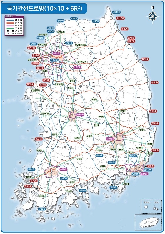 국토부는 “국민들이 전국 어디에서나 간선도로에 더 편리하게 접근할 수 있도록 남북방향 10개 축과 동서방향 10개 축으로 재편했다”고 설명했다.