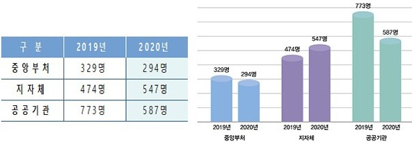 특히 국가직의 경우 중증장애인 경력 채용을 통한 선발인원은 39명으로, 2017년 22명과 2018·2019년 25명에 비해 크게 증가해 중앙부처 내 중증장애인 공무원 수가 처음으로 1000명 대를 넘어섰다.