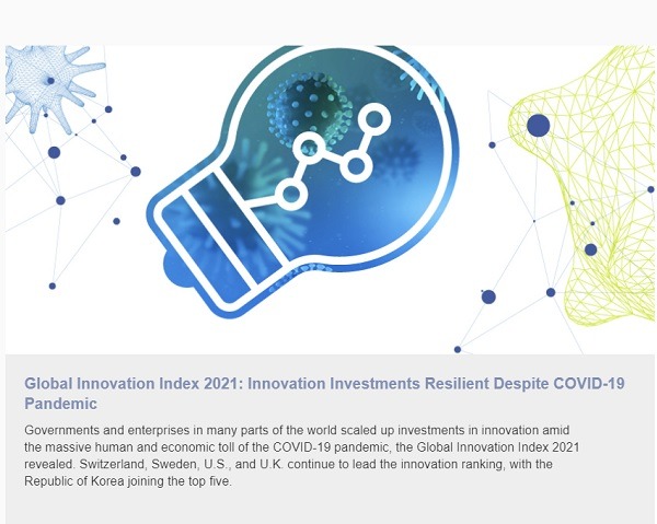 우리나라가 글로벌 혁신지수에서 역대 최고인 세계 5위, 아시아지역에서는 1위를 차지했다. 이는 상위 20개국 중 10위에서 5위로 가장 큰 폭으로 순위가 오른 기록이다.