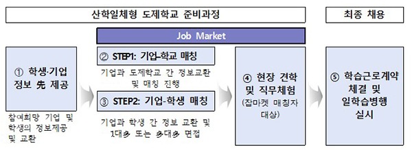학생은 학습기업의 일학습병행 시작 전 상호 정보를 공유하고 기업견학 및 직무체험과 면접 등을 통해 기업은 적합한 인재를, 학생은 원하는 기업을 선택할 수 있도록 지원하고 있다.