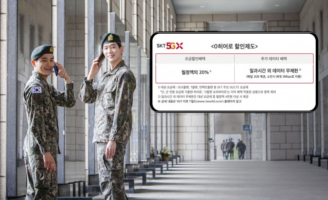 ‘0히어로 할인제도’는 SKT 회선을 사용하는 군인 고객에게 요금제에 따라 20% 요금할인과 일과시간 외 무제한급 데이터를 추가로 제공하는 프로그램이다.