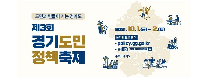 도민이 직접 참여해 정책을 제안하고 결정하는 ‘숙의(熟議)민주주의 실현의 장’인 제3회 경기도민 정책축제가 10월 1일부터 2일까지 비대면 온라인 방식으로 개최된다.