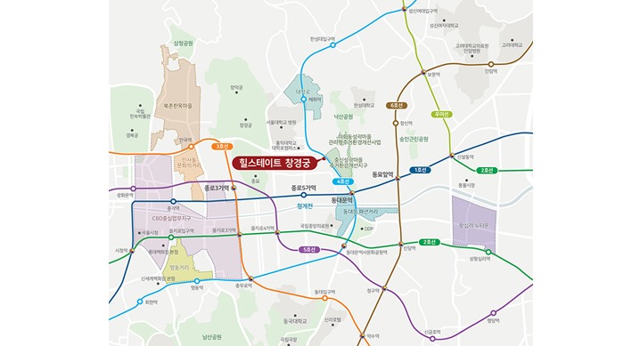 힐스테이트 창경궁은 시청, 광화문을 잇는 종로 중심업무지구(CBD, Central Business District)와 인접해 뛰어난 직주근접 환경을 갖췄다. 중심업무지구는 각국의 대사관과 대기업 본사, 다국적 기업이 위치한 곳이다.