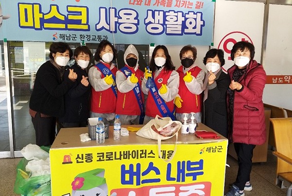 해남군 여성자원봉사회 박미성 씨는 코로나19가 시작되던 지난해부터 현재까지 버스터미널과 시내버스 내부소독 등 방역봉사에 참여하고 있다.