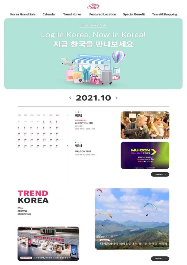 코리아 그랜드세일을 기반으로 연중 운영하는 하나의 박람회처럼 주제관, 지역관, 특별관, 기업관 등을 운영하고 이러한 정보를 시기별로 정리한 달력도 제공한다. ‘코리아그랜드세일(Korea Grand Sale)’, ‘캘린더(Calendar)’, ‘트렌드 코리아(Trend Korea)’, ‘피처드 로케이션(Featured Location)’, ‘스페셜 베네핏(Special Benefit)’, ‘트래블 앤 쇼핑(Travel & Shopping)’ 등 6가지 주제(메뉴)로 구성돼 있다.