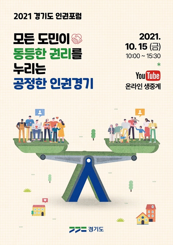 경기도 인권포럼에 참여하려면 오는 15일 오전 10시부터 오후 3시 30분까지 유튜브에서 ‘2021 경기도 인권포럼’을 검색 후 접속하면 된다.