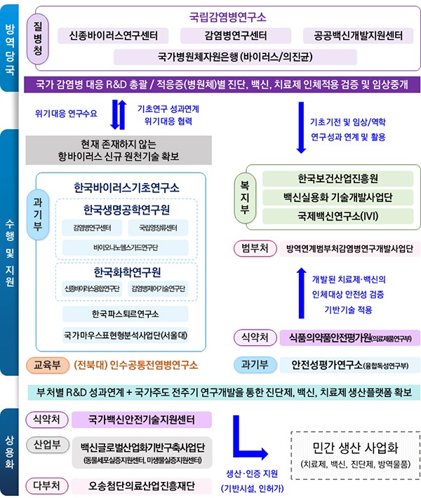 특히 위기 시에는 국가 필요 주문형 연구로 진단·치료제·백신 등을 신속하게 확보하기 위해 방역당국 요청을 최우선 수행할 수 있도록 프로토콜 관점의 협력 규칙을 마련한다.