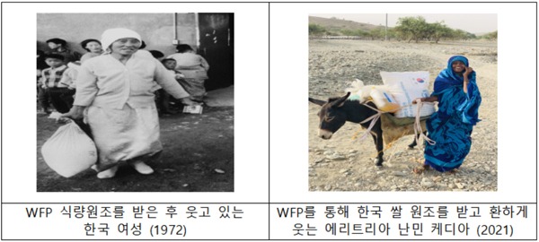 우리나라는 약 50년 전인 1964년만 해도 FAO, WFP 등 국제기구로부터 식량 관련 원조를 받았으나 지난해에는 WFP 기구 내 11위의 공여국이 됐다.