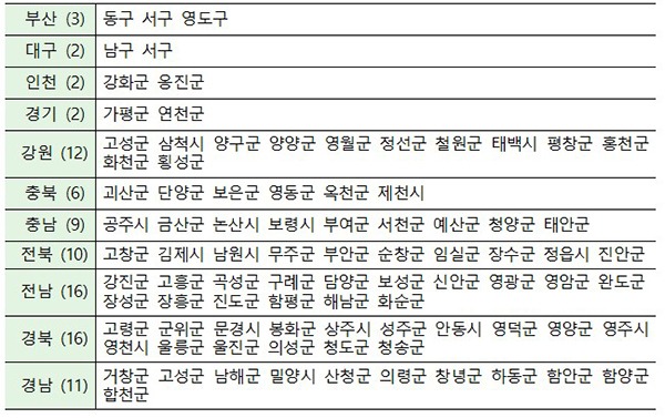 정부는 지역의 인구감소 문제가 심각해짐에 따라 지난해 말 ‘국가균형발전 특별법’ 개정과 지난 6월 이 법 시행령을 개정해 인구감소지역을 지정하고 지원할 법적 근거를 마련했다.