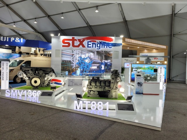 STX엔진은 국내 최대 방위 산업용 디젤 엔진 전문 생산 업체라는 위상에 맞춰 대한민국 육군의 주력 전차 K1A2 전차 성능 개량용 디젤 엔진과 수출 명품 무기로 널리 알려진 K9 자주포의 디젤 엔진 등을 전시하고, 여러 해안 위협 요소를 전방위로 감시할 수 있는 GPS-800K 지능형 해안 감시 레이더 국산화 개발 완료 시제품을 함께 전시한다.