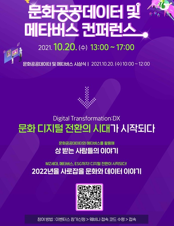 한편, 시상식 이후 ‘문화, 디지털 전환의 시작’이라는 주제로 ‘문화공공데이터 및 메타버스 학술대회(콘퍼런스)’가 열린다.