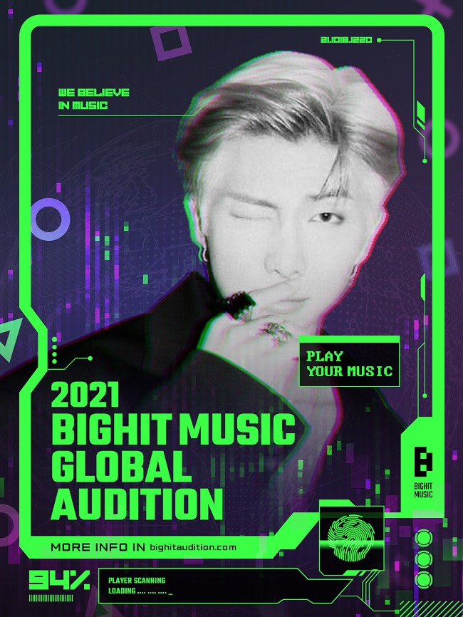 빅히트 뮤직은 지난(18일)부터 12월 20일까지 '2021 빅히트 뮤직 글로벌 오디션'을 개최한다. 국적과 거주지 무관, 2002년 이후 출생한 남자라면 누구나 지원 가능하며 접수는 빅히트 뮤직 오디션 홈페이지(bighitaudition.com)에서 진행된다.