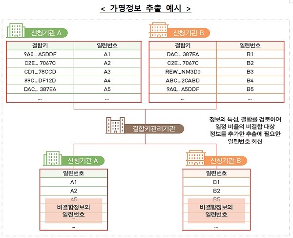 가명정보 추출 신청때 결합키관리기관이 결합 목적, 결합률 등을 고려해 신청자에게 추출 가능 여부를 통지하고, 가명정보 추출에 필요한 정보(일련번호)도 전송하도록 했다.