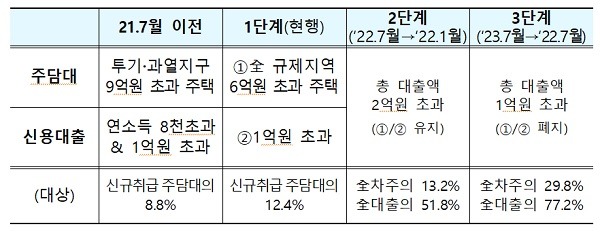 DSR규제는 내년 7월부터는 총 대출액 2억원을 초과할 때로, 1년 후에는 총대출액 1억원을 초과할 때로 순차적으로 확대될 예정이었다.