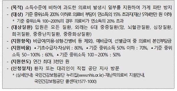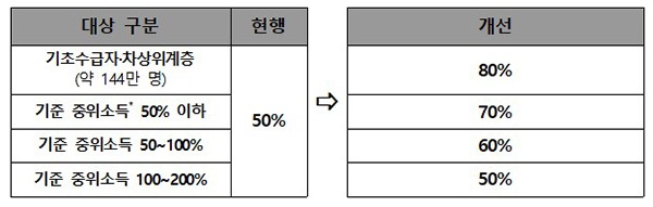 이는 그동안 동일한 지원비율에 따라 상대적으로 저소득층의 의료비 부담 체감도가 더 높고, 코로나19로 인해 가계소득이 감소된 상황에서 과도한 의료비 부담에 따른 위기 상황에 선제적으로 대응해 저소득층의 의료보장을 강화하기 위한 것이다.